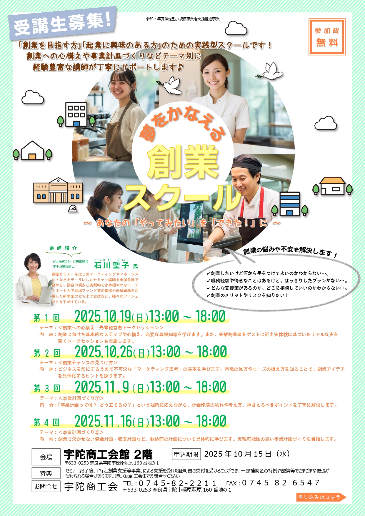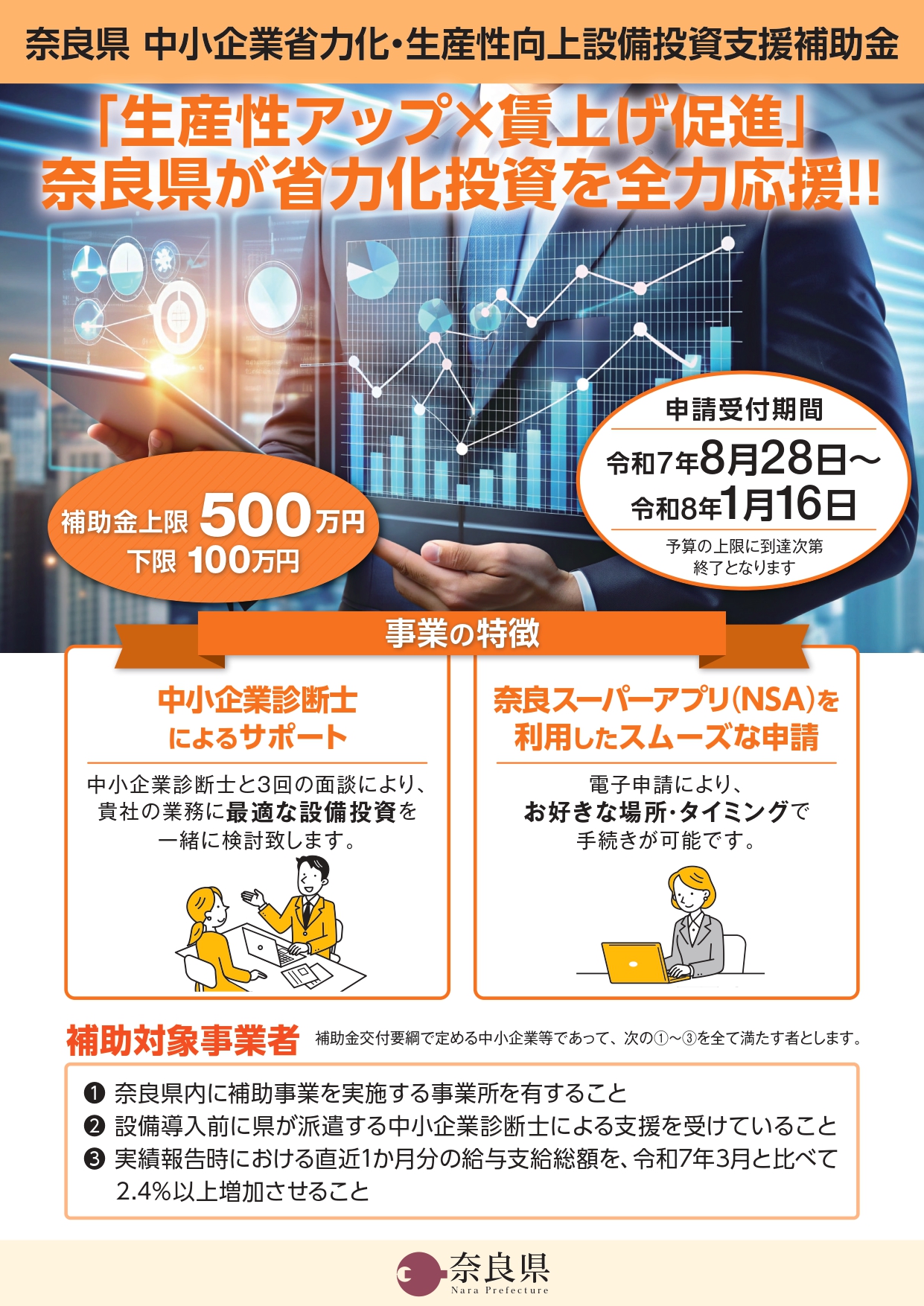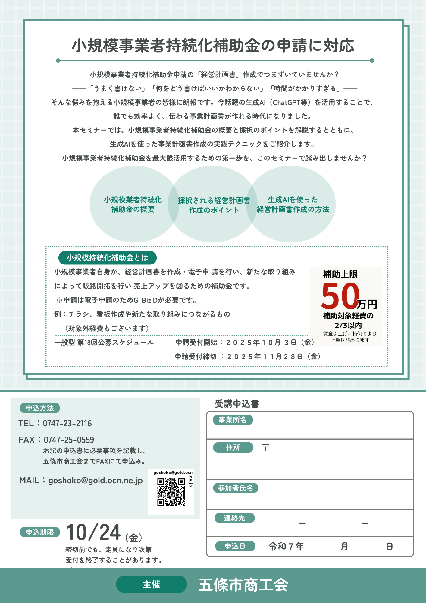 ⑤申請締め切りは、令和7年11月28日(金)17時までではありますが、本会の「事業支援計画書(様式4)」の発行ご依頼については令和7年11月18日(火)までとさせていただきますので、必ず期日(11/18)までに必要書類をご準備の上、斑鳩町商工会までお越しいただきご依頼をお願いします。
