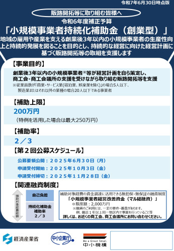 小規模事業者持続化補助金<創業型(第2回)>公募要領等はこちら