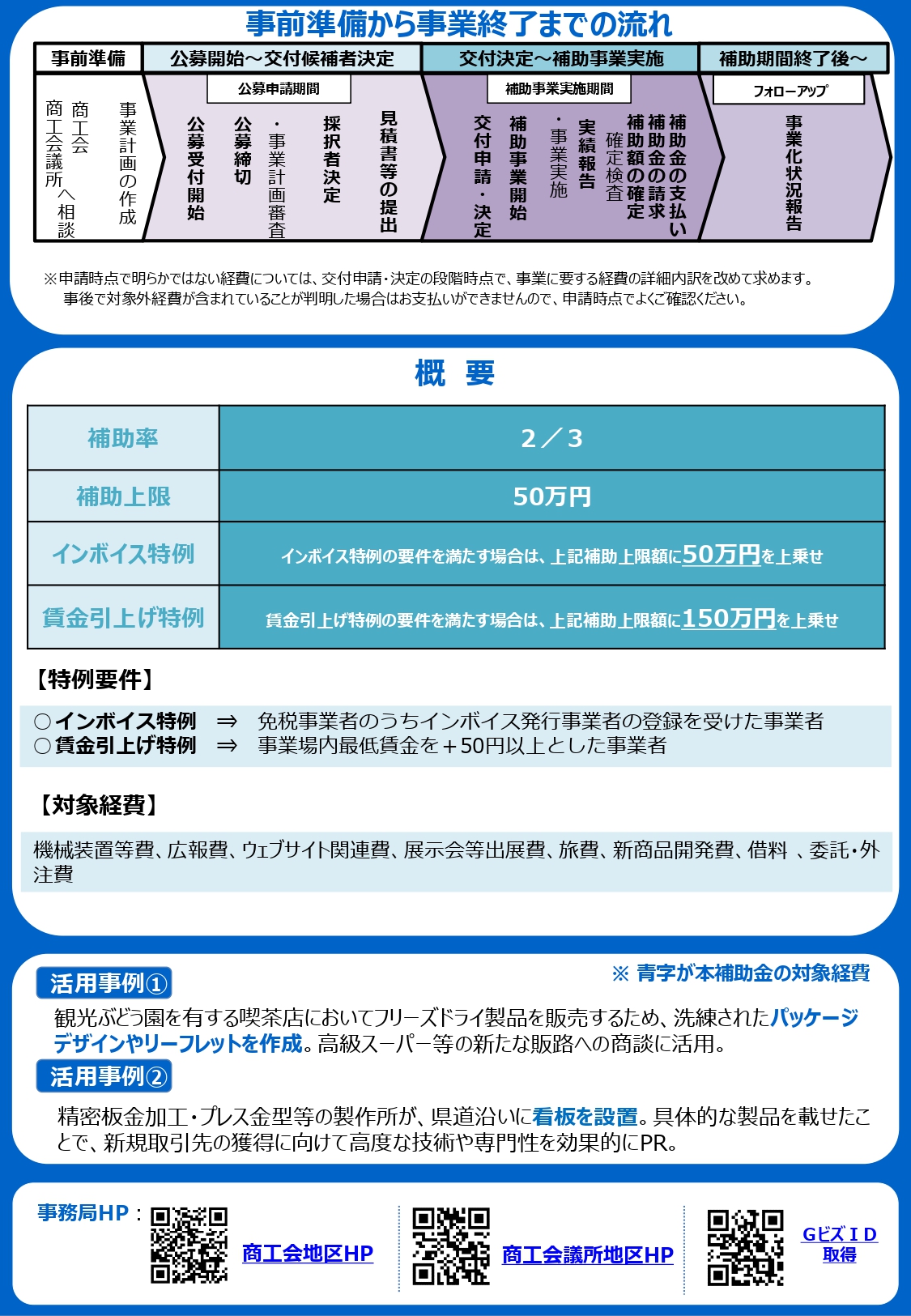申請をお考えの方は上記サイトより公募要領、別紙参考資料、ガイドブックを必ずご熟読ください。