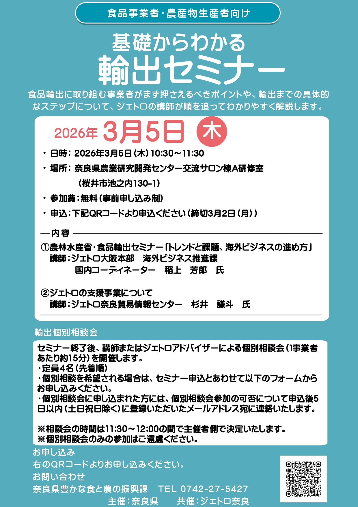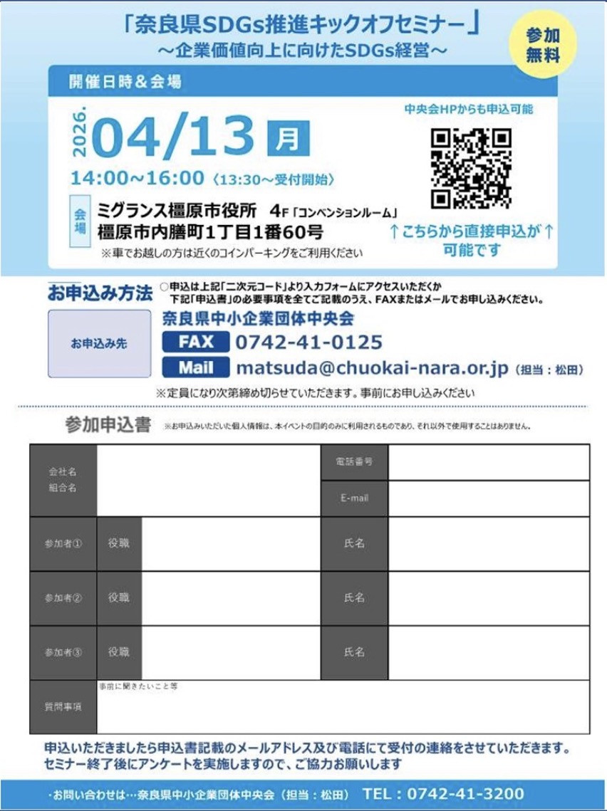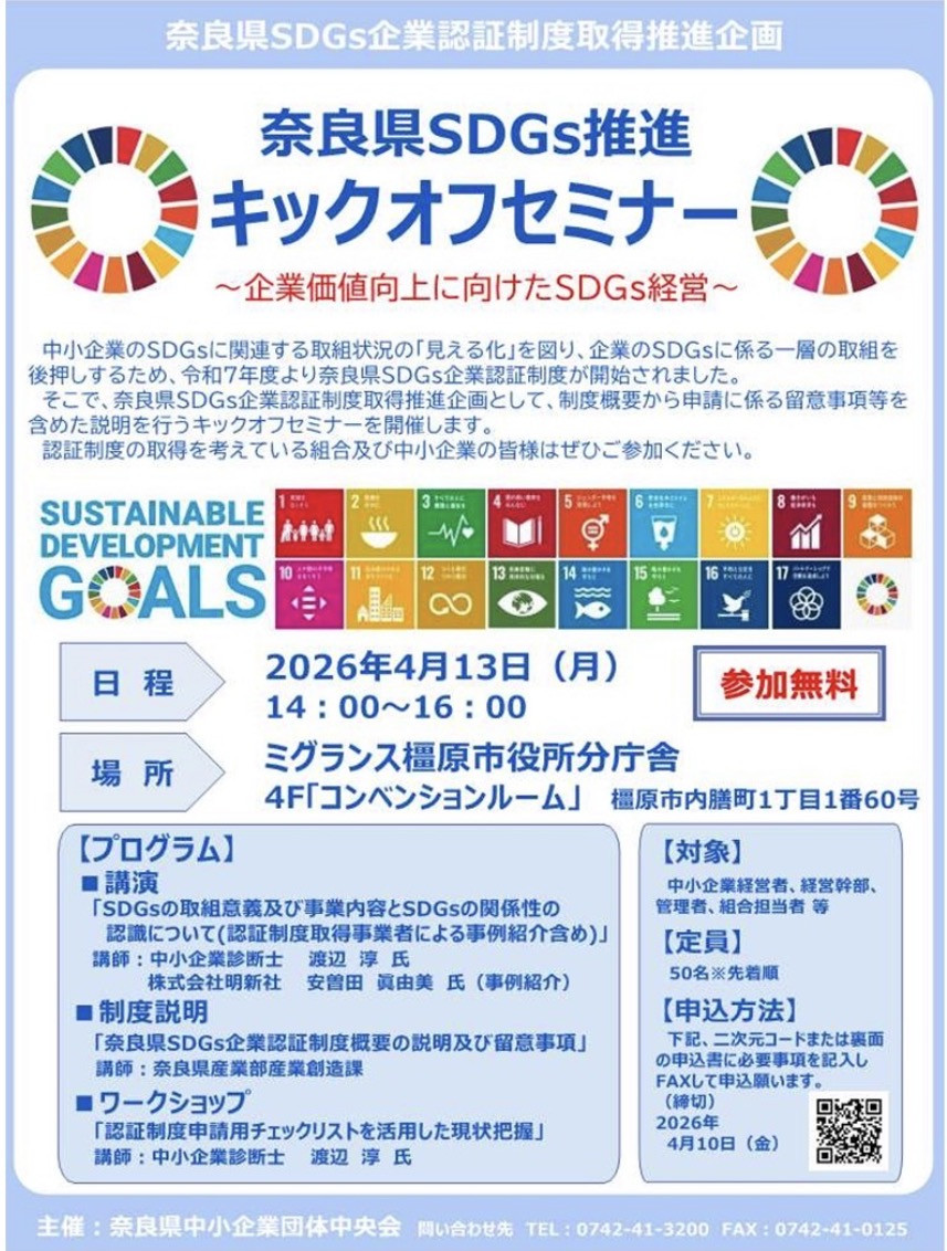 本年度の働き方改革推進支援事業では、地域産品の販路拡大と事業者の生産性向上を目的として、奈良県内および首都圏・関西圏の主要商業施設・展示会において4つの事業を実施しました。7月の奈良県庁回廊特産品マルシェでは、奈良公園を訪れる外国人観光客を中心に多くの来場者が訪れ、地域性や製造のこだわりを直接伝えることで、観光需要を取り込んだ新たな販路開拓の成果が得られました。続いて9月に東京・KITTE丸の内で開催した奈良フェアでは、首都圏でのPR機会として、奈良産品の魅力を多様な消費者に発信できたほか、キャッシュレス端末等のデジタルツール導入により業務効率が向上し、生産性向上や働きやすい環境づくりにも寄与しました。また、首都圏バイヤーとの商談を通じてBtoB取引案件が生まれ、県外市場の開拓にもつながりました。さらに、1月のFOOD STYLE JAPAN 2026〈関西〉では、食品バイヤー24,487名が来場する中で、多くの商談・成約が生まれ、奈良県産食品の品質と特徴が高く評価されました。試食を伴う専門展示会特有の商談機会を活かし、食品事業者にとって実質的な販売成果と今後の製品改良に資する情報を獲得できました。加えて、近鉄百貨店大和路ブースでのPR販売では、創業5年以内の小規模事業所が地域の百貨店で直接販売を行い、消費者の評価を得るとともに、バイヤーとの商談を経て常設コーナーへの採用につながるケースも生まれました。